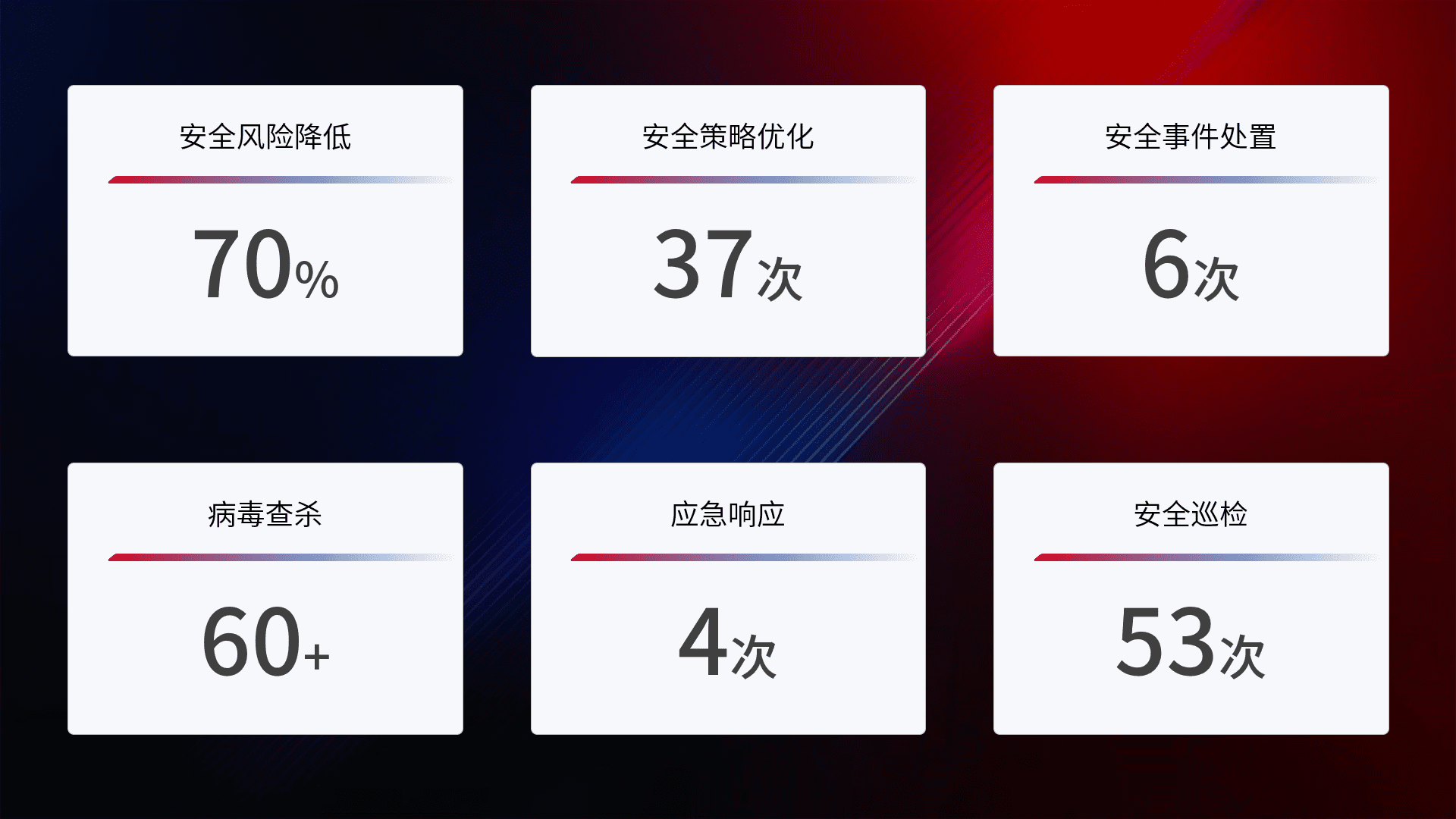 综合报告与文档服务: 定期提供安全事件处置报告、、周/季度总结报告和年度总结报告;详尽的文档服务可帮助客户了解网络安全状况,,支持决策制定和流程优化。。。