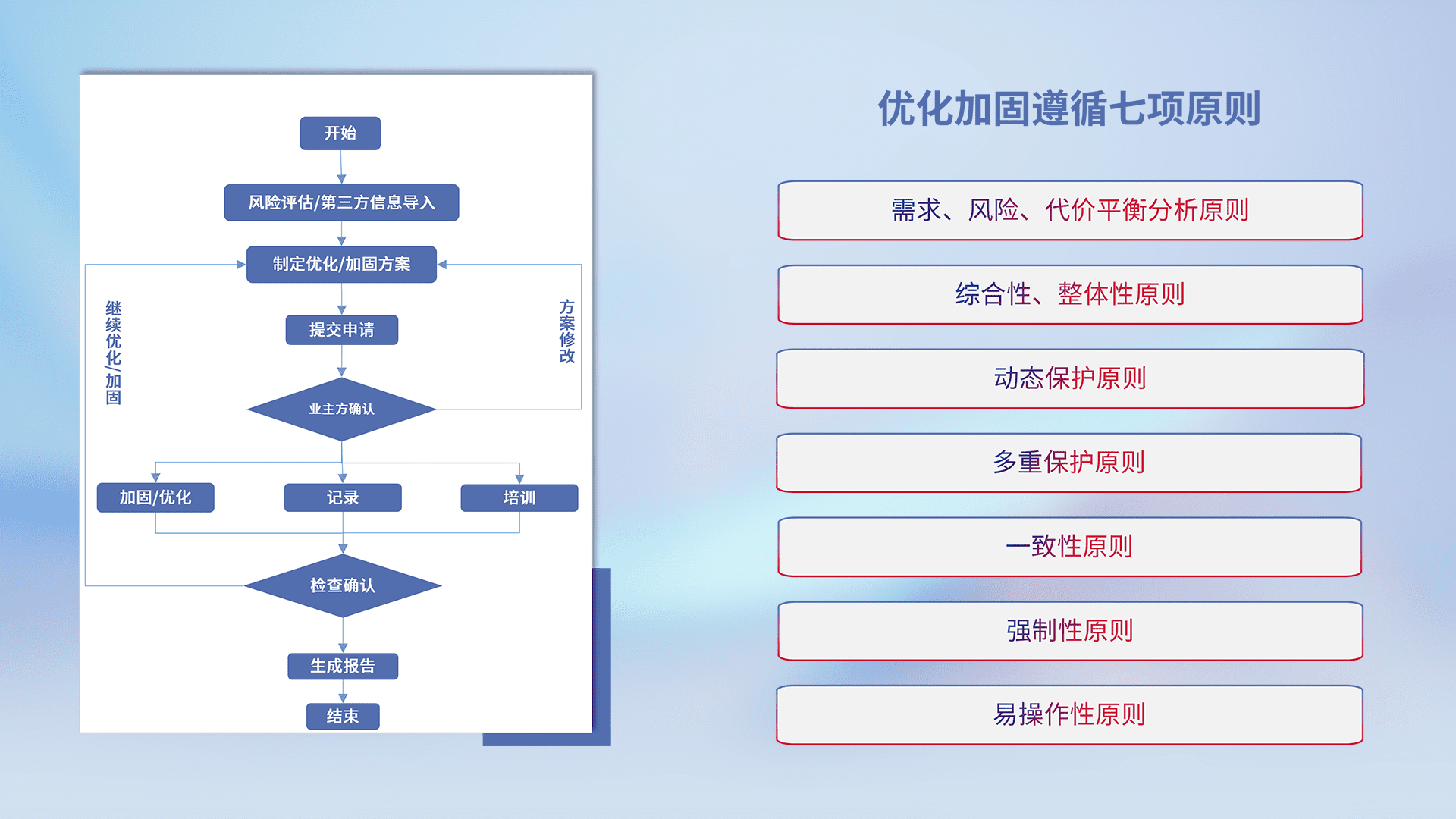 最大程度利用现有资产,,,对评估发现的问题进行封堵与整改,,,,防止漏洞被利用,,,,提升整体网络安全性,,为客户带来高标准的优化加固服务。。。